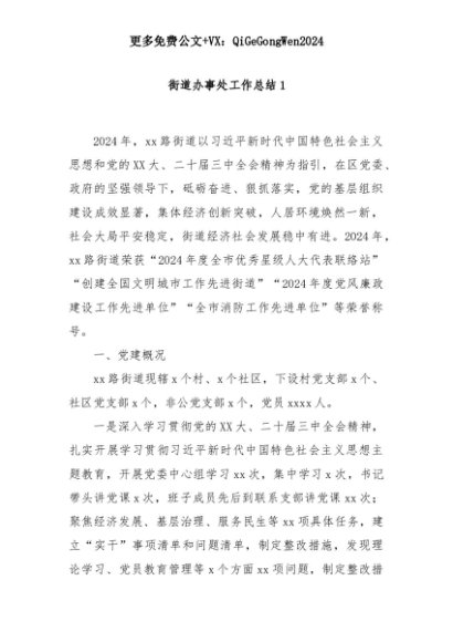 【七哥公文】2025年:街道办事处工作总结1+更多免费公文+VX:QiGeGongWen2024+更多免费公文+VX:QiGeGongWen2024