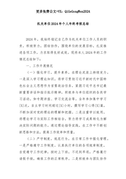 【七哥公文】2025年:机关单位2024年个人年终考核总结+更多免费公文+VX:QiGeGongWen2024+更多免费公文+VX:QiGeGongWen2024
