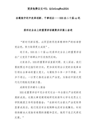 【七哥公文】2025年:在遵规守纪中改革创新、干事创业——XXX在二十届zy纪委四次全会上的重要讲话凝聚共识催人奋进+更多免费公文+VX:QiGeGongWen2024+更多免费公文+VX:QiGeGongWen2024