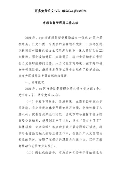 【七哥公文】2025年:市场监督管理局工作总结+更多免费公文+VX:QiGeGongWen2024+更多免费公文+VX:QiGeGongWen2024