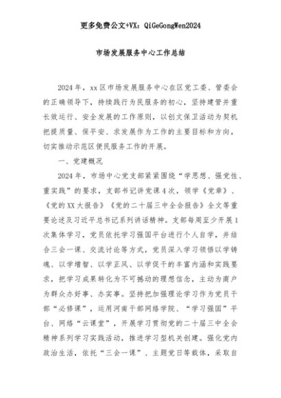 【七哥公文】2025年:市场发展服务中心工作总结+更多免费公文+VX:QiGeGongWen2024+更多免费公文+VX:QiGeGongWen2024