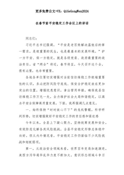 【七哥公文】2025年:在春节前平安稳定工作会议上的讲话+更多免费公文+VX:QiGeGongWen2024+更多免费公文+VX:QiGeGongWen2024