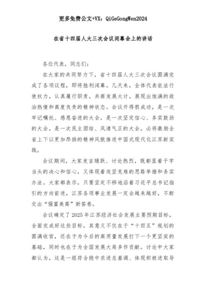 【七哥公文】2025年:在省十四届人大三次会议闭幕会上的讲话+更多免费公文+VX:QiGeGongWen2024+更多免费公文+VX:QiGeGongWen2024