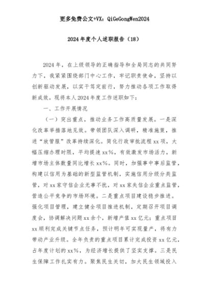 【七哥公文】2025年:2024年度个人述职报告(18)+更多免费公文+VX:QiGeGongWen2024+更多免费公文+VX:QiGeGongWen2024