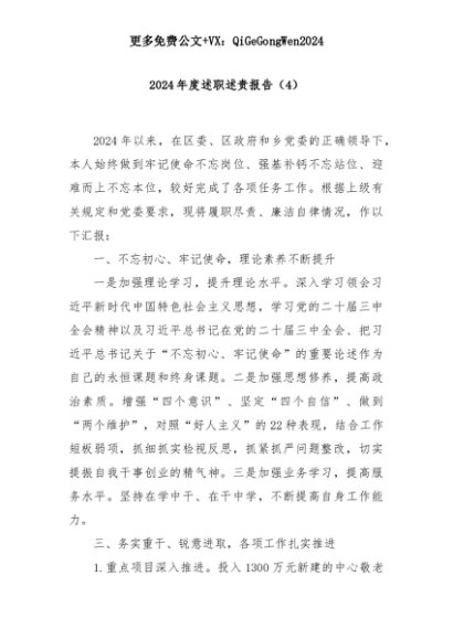 【七哥公文】2025年:2024年度述职述责报告(4)+更多免费公文+VX:QiGeGongWen2024+更多免费公文+VX:QiGeGongWen2024