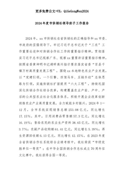 【七哥公文】2025年:2024年度市供销社领导班子工作报告+更多免费公文+VX:QiGeGongWen2024+更多免费公文+VX:QiGeGongWen2024