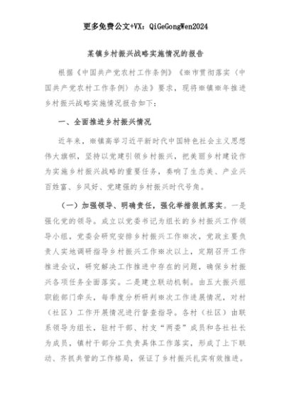 【七哥公文】2025年:某镇乡村振兴战略实施情况的报告+更多免费公文+VX:QiGeGongWen2024+更多免费公文+VX:QiGeGongWen2024