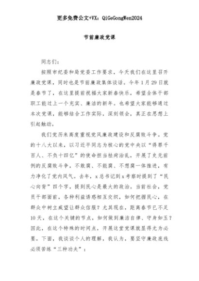 【七哥公文】2025年:节前廉政党课+更多免费公文+VX:QiGeGongWen2024+更多免费公文+VX:QiGeGongWen2024