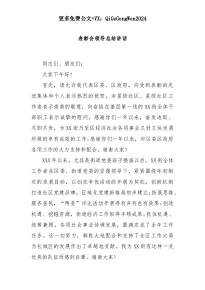 【七哥公文】2025年:表彰会领导总结讲话+更多免费公文+VX:QiGeGongWen2024+更多免费公文+VX:QiGeGongWen2024