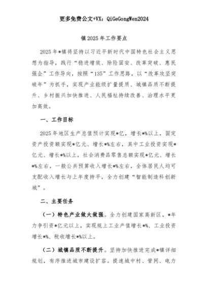 【七哥公文】2025年:镇2025年工作要点+更多免费公文+VX:QiGeGongWen2024+更多免费公文+VX:QiGeGongWen2024