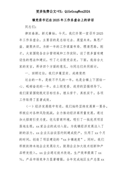 【七哥公文】2025年:镇党委书记在2025年工作务虚会上的讲话+更多免费公文+VX:QiGeGongWen2024+更多免费公文+VX:QiGeGongWen2024