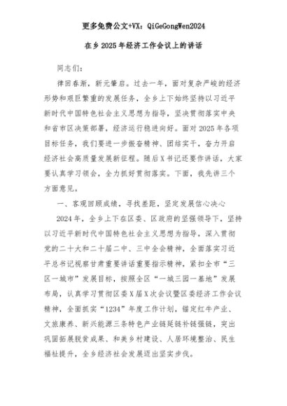 【七哥公文】2025年:在乡2025年经济工作会议上的讲话+更多免费公文+VX:QiGeGongWen2024+更多免费公文+VX:QiGeGongWen2024