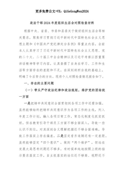 【七哥公文】2025年:政法干部2024年度组织生活会对照检查材料+更多免费公文+VX:QiGeGongWen2024+更多免费公文+VX:QiGeGongWen2024