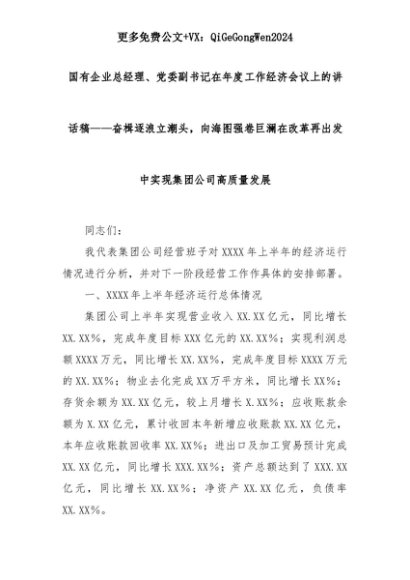 【七哥公文】2025年:国有企业总经理、党委副书记在年度工作经济会议上的讲话稿——奋楫逐浪立潮头,向海图强卷巨澜在改革再出发中实现集团公司高质量发展+更多免费公文+VX:QiGeGongWen2024+更多免费公文+VX:QiGeGongWen2024