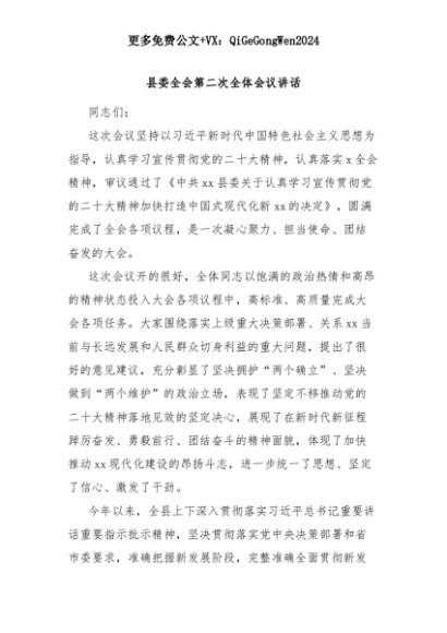 【七哥公文】2025年:县委全会第二次全体会议讲话+更多免费公文+VX:QiGeGongWen2024+更多免费公文+VX:QiGeGongWen2024