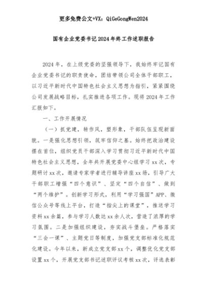 【七哥公文】2025年:国有企业党委书记2024年终工作述职报告+更多免费公文+VX:QiGeGongWen2024+更多免费公文+VX:QiGeGongWen2024