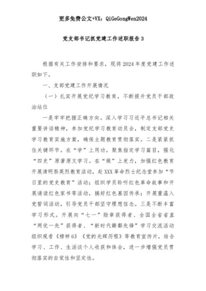 【七哥公文】2025年:党支部书记抓党建工作述职报告3+更多免费公文+VX:QiGeGongWen2024+更多免费公文+VX:QiGeGongWen2024