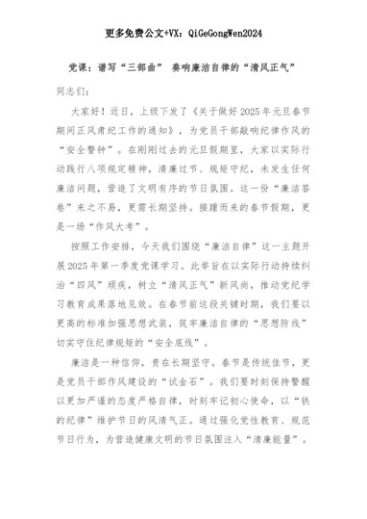 【七哥公文】2025年:党课:谱写“三部曲” 奏响廉洁自律的“清风正气”+更多免费公文+VX:QiGeGongWen2024+更多免费公文+VX:QiGeGongWen2024