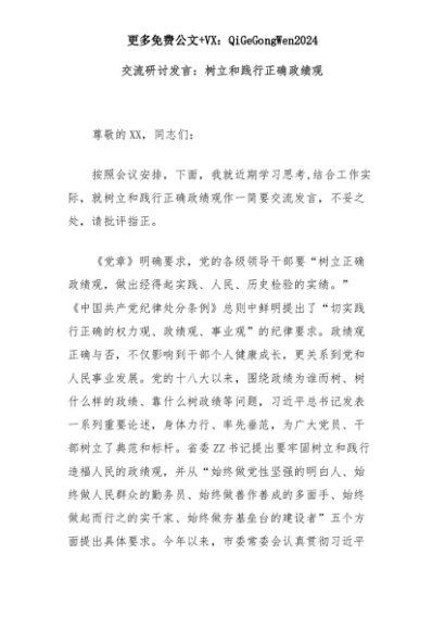 【七哥公文】2025年:交流研讨发言:树立和践行正确政绩观+更多免费公文+VX:QiGeGongWen2024+更多免费公文+VX:QiGeGongWen2024
