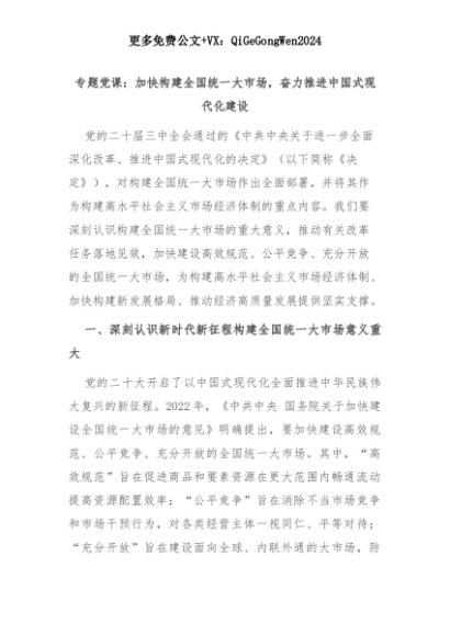 【七哥公文】2025年:专题党课:加快构建全国统一大市场,奋力推进中国式现代化建设+更多免费公文+VX:QiGeGongWen2024+更多免费公文+VX:QiGeGongWen2024