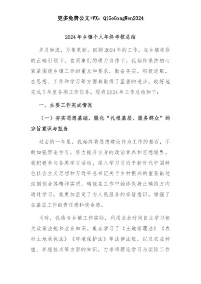【七哥公文】2025年:2024年乡镇个人年终考核总结+更多免费公文+VX:QiGeGongWen2024+更多免费公文+VX:QiGeGongWen2024