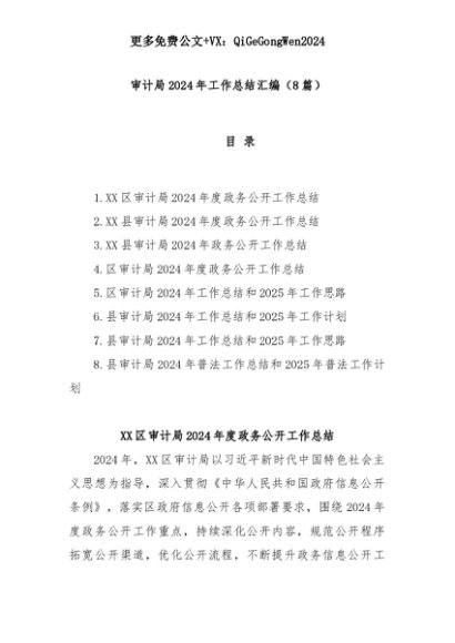 【七哥公文】2025年:(8篇)审计局2024年工作总结汇编+更多免费公文+VX:QiGeGongWen2024+更多免费公文+VX:QiGeGongWen2024