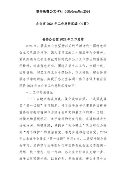 【七哥公文】2025年:(4篇)办公室2024年工作总结汇编+更多免费公文+VX:QiGeGongWen2024+更多免费公文+VX:QiGeGongWen2024