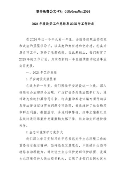 【七哥公文】2025年:2024年政法委工作总结及2025年工作计划+更多免费公文+VX:QiGeGongWen2024+更多免费公文+VX:QiGeGongWen2024