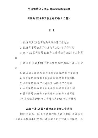 【七哥公文】2025年:(10篇)司法局2024年工作总结汇编+更多免费公文+VX:QiGeGongWen2024+更多免费公文+VX:QiGeGongWen2024