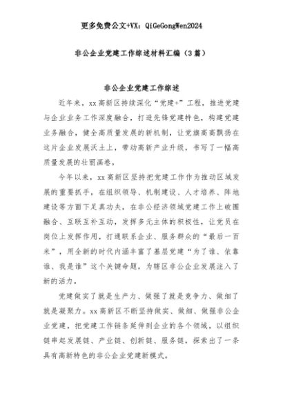 【七哥公文】2025年:(3篇)非公企业党建工作综述材料汇编+更多免费公文+VX:QiGeGongWen2024+更多免费公文+VX:QiGeGongWen2024