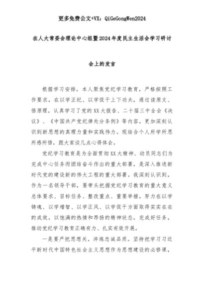 【七哥公文】2025年:在人大常委会理论中心组暨2024年度民主生活会学习研讨会上的发言+更多免费公文+VX:QiGeGongWen2024+更多免费公文+VX:QiGeGongWen2024