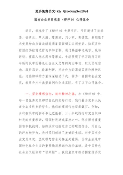 【七哥公文】2025年:国有企业党员观看〈榜样9〉心得体会+更多免费公文+VX:QiGeGongWen2024+更多免费公文+VX:QiGeGongWen2024