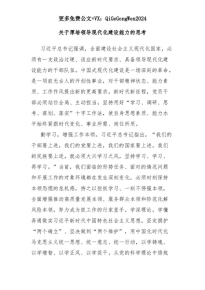 【七哥公文】2025年:关于厚培领导现代化建设能力的思考+更多免费公文+VX:QiGeGongWen2024+更多免费公文+VX:QiGeGongWen2024