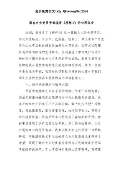 【七哥公文】2025年:国有企业党员干部观看《榜样9》的心得体会+更多免费公文+VX:QiGeGongWen2024+更多免费公文+VX:QiGeGongWen2024