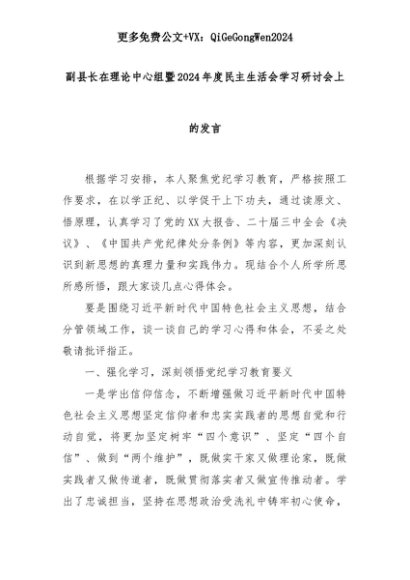 【七哥公文】2025年:副县长在理论中心组暨2024年度民主生活会学习研讨会上的发言+更多免费公文+VX:QiGeGongWen2024+更多免费公文+VX:QiGeGongWen2024