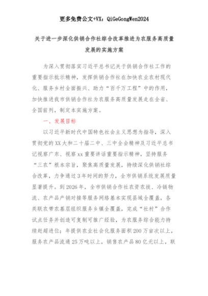 【七哥公文】2025年:关于进一步深化供销合作社综合改革推进为农服务高质量发展的实施方案+更多免费公文+VX:QiGeGongWen2024+更多免费公文+VX:QiGeGongWen2024