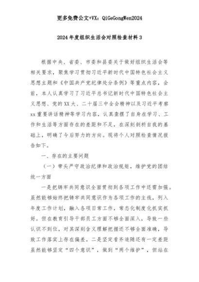 【七哥公文】2025年:2024年度组织生活会对照检查材料3+更多免费公文+VX:QiGeGongWen2024+更多免费公文+VX:QiGeGongWen2024