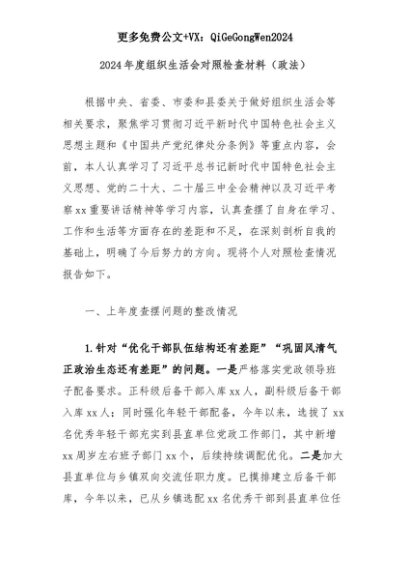 【七哥公文】2025年:2024年度组织生活会对照检查材料(政法)+更多免费公文+VX:QiGeGongWen2024+更多免费公文+VX:QiGeGongWen2024