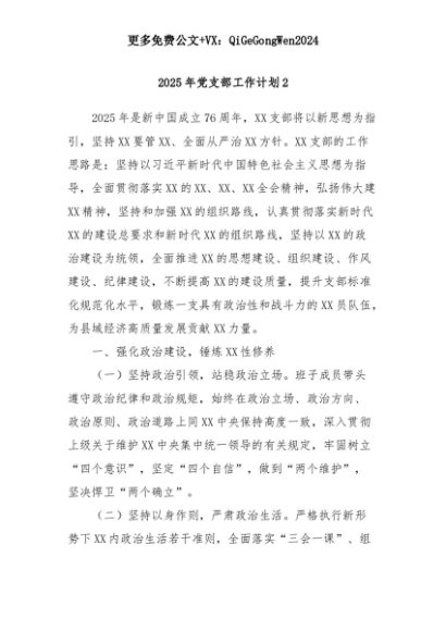 【七哥公文】2025年:2025年党支部工作计划2+更多免费公文+VX:QiGeGongWen2024+更多免费公文+VX:QiGeGongWen2024