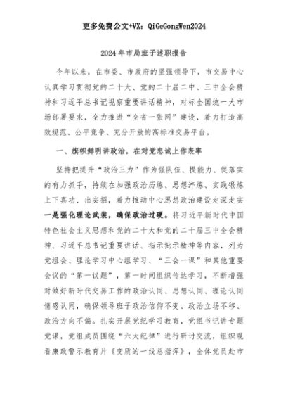 【七哥公文】2025年:2024年市局班子述职报告+更多免费公文+VX:QiGeGongWen2024+更多免费公文+VX:QiGeGongWen2024