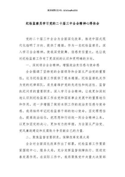 / 【七哥公文】2024年:纪检监察员学习党的二十届三中全会精神心得体会+更多免费公文+VX:QiGeGongWen2024