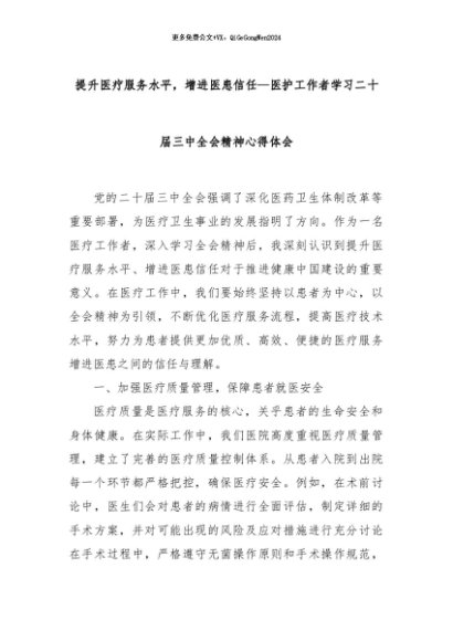 【七哥公文】2024年:提升医疗服务水平,增进医患信任—医护工作者学习二十届三中全会精神心得体会+更多免费公文+VX:QiGeGongWen2024