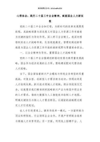 【七哥公文】2024年:心得体会:践行二十届三中全会精神,赋能国企人力新征程+更多免费公文+VX:QiGeGongWen2024