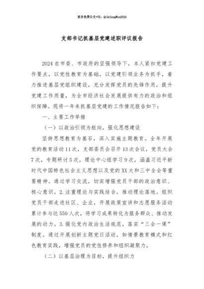/ 【七哥公文】2024年:支部书记抓基层党建述职评议报告+更多免费公文+VX:QiGeGongWen2024