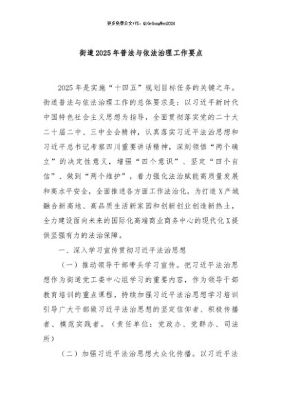/ 【七哥公文】2024年:街道2025年普法与依法治理工作要点+更多免费公文+VX:QiGeGongWen2024
