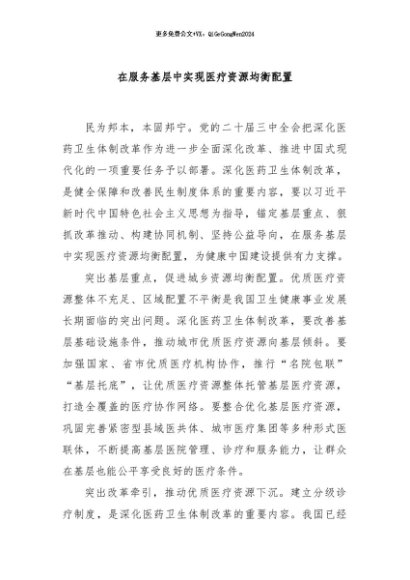 / 【七哥公文】2024年:在服务基层中实现医疗资源均衡配置+更多免费公文+VX:QiGeGongWen2024