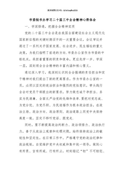 / 【七哥公文】2024年:市委秘书办学习二十届三中全会精神心得体会+更多免费公文+VX:QiGeGongWen2024