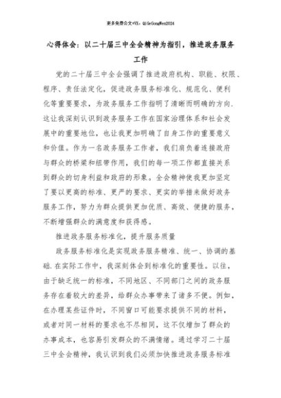 【七哥公文】2024年:心得体会:以二十届三中全会精神为指引,推进政务服务工作+更多免费公文+VX:QiGeGongWen2024