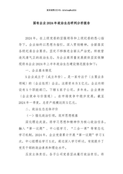 【七哥公文】2024年:国有企业2024年政治生态研判分析报告+更多免费公文+VX:QiGeGongWen2024