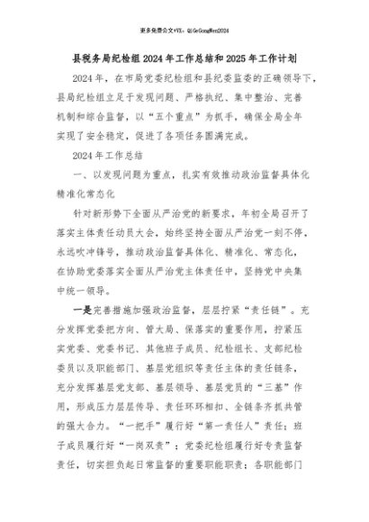 【七哥公文】2024年:县税务局纪检组2024年工作总结和2025年工作计划+更多免费公文+VX:QiGeGongWen2024
